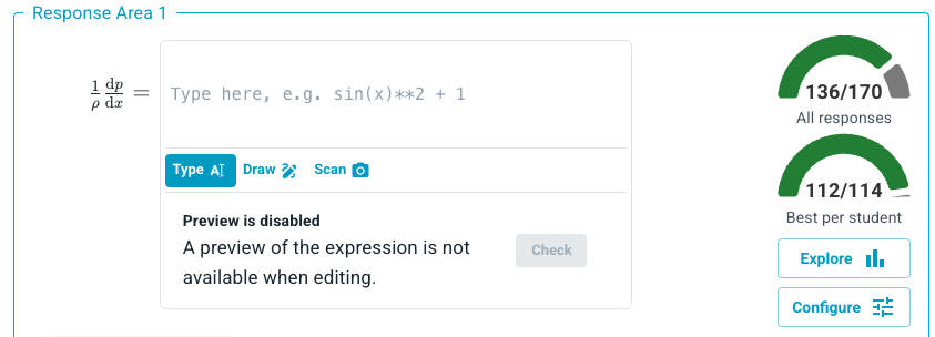 - Completion statistics per response area (in the 'STATS' tab within a question)