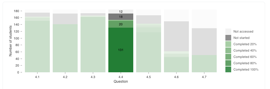 - Completion statistics per question (in the 'STATS' tab within a question)