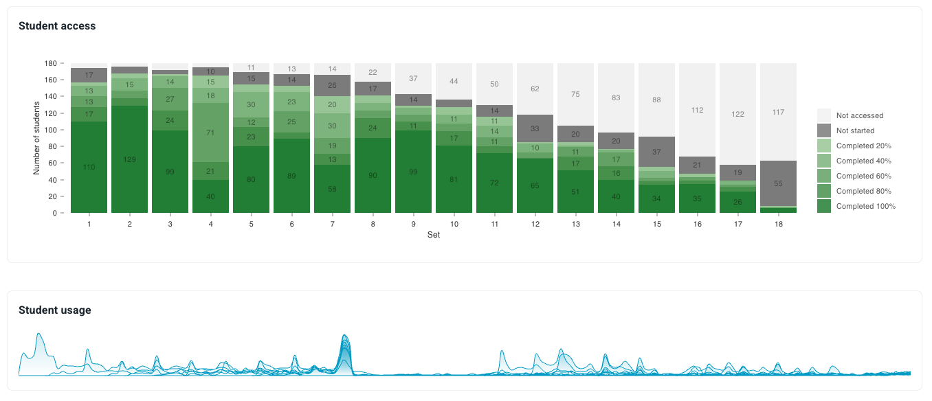 - Completion and activity statistics per Set (on the 'OVERVIEW' tab within a module)